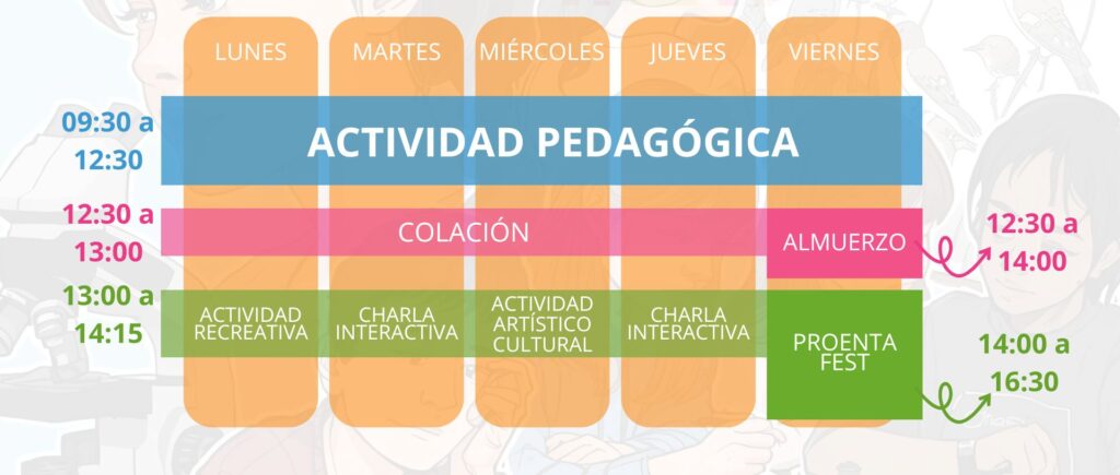 PROENTA Verano se desarrolla desde el 2006 y está definido como un espacio académico que, en el mes de enero, permite a los niños, niñas y jóvenes satisfacer sus inquietudes intelectuales al construir nuevos conocimientos, fortalecer sus habilidades afectivo-sociales y utilizar su tiempo libre sanamente dentro de un clima de cooperación, respeto a la diversidad y responsabilidad hacia ellos mismos, los demás y su medio ambiente.